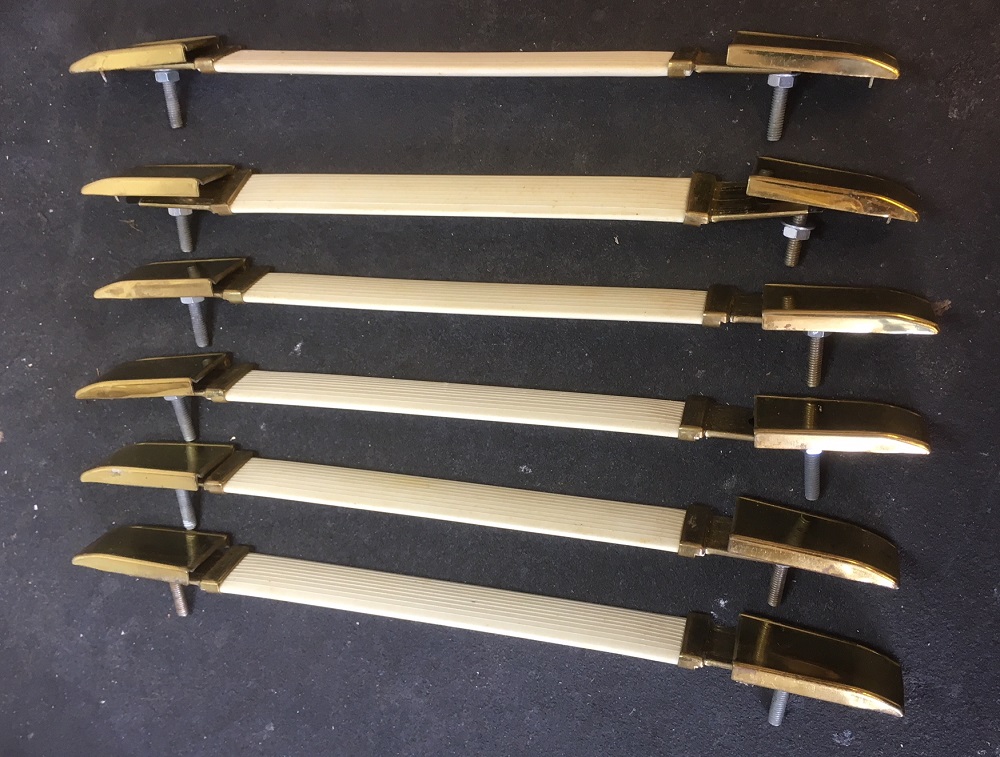 Rare NOS Vintage handles, white with gold ends, some age-related 'patina' tarnishing.