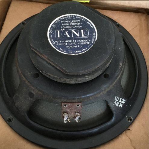This is an old 10" FANE speaker with an aluminium dust cap. I think came out of a 1970’s scrapped Alligator amp. A rare speaker that may be of interest to someone. Impedance 8 ohms, estimated 25 - 30 Watts. £12.00