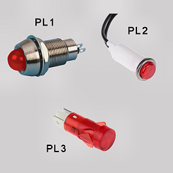 PL3 - 230V ac Red Neon no bezel. Snap fit with spade terminals. 3 in stock. £4.55 each